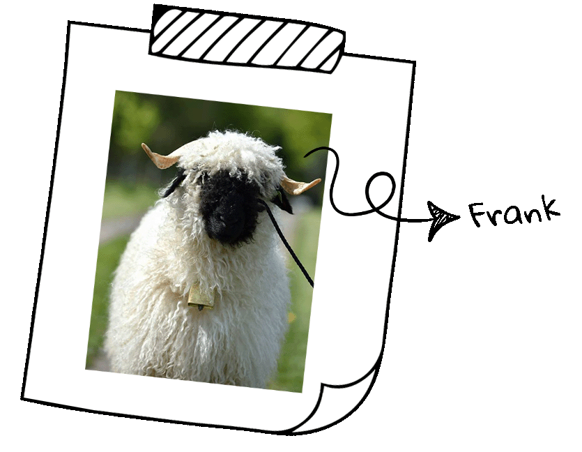 Ne smemo pa pozabiti na našega posebneža, črnonoso švicarsko ovco Franka, našega pravega cartljivca. S svojim mirnim, prijaznim značajem in simpatičnim poskakovanjem vedno poskrbi za nasmeh.